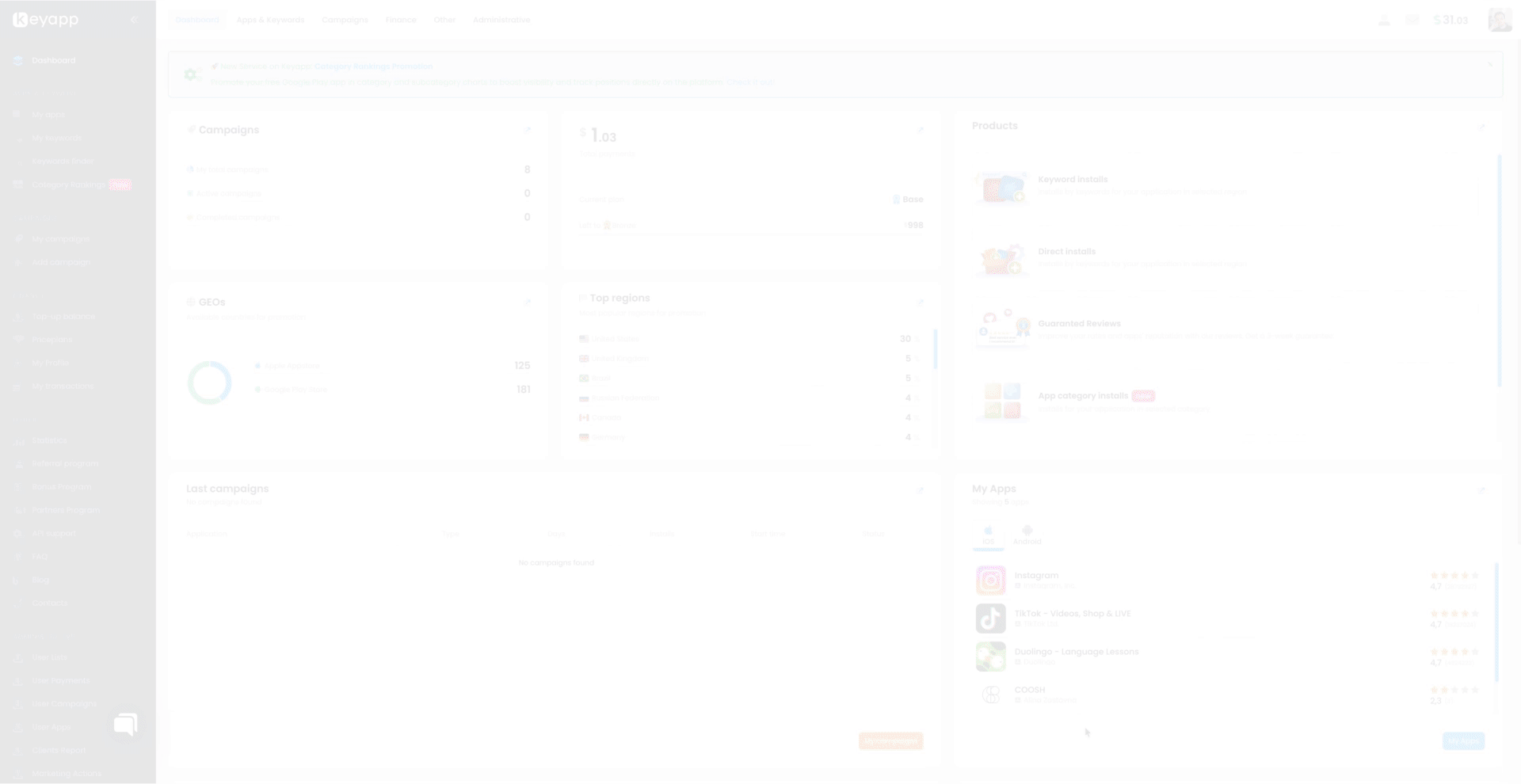 Category Rankings Promotion: New Service on Keyapp